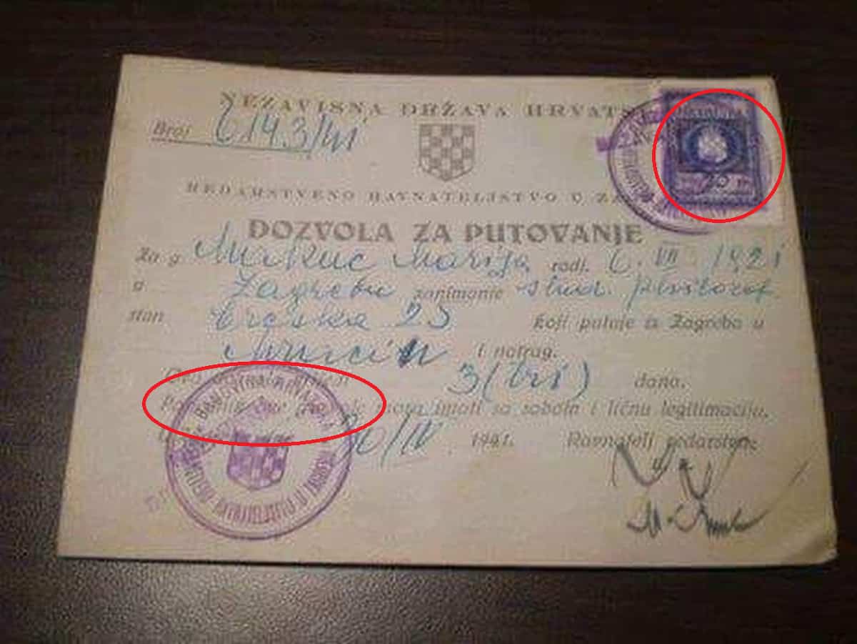 Do tog trenutka, ustaše su u nedostatku vlastitog znakovlja znale brisati krunu s grbova na pečatima iz Kraljevine Jugoslavije, no odavao bi ih natpis “Banovina Hrvatska”. Ipak, i ta upotreba grba, s prvim crvenim poljem, zna poslužiti u propagandi. Stoga ne čudi što se sljedeća fotografija našla ispod Karačićeve objave, kao dodatni “argument” u prilog crveno-bijeloj konfuziji.