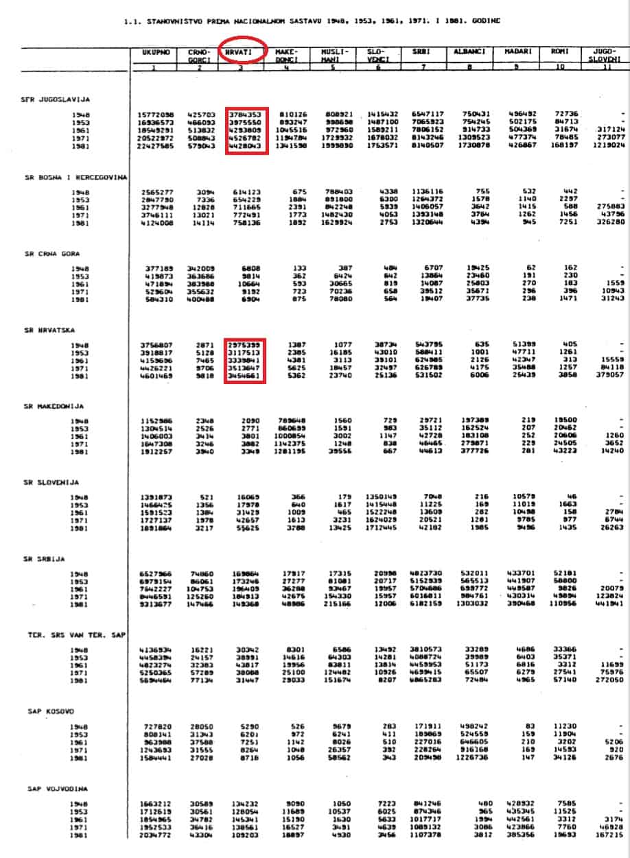Popisi stanovništva u Jugoslaviji prilično jasno demantiraju predsjednicu. Ispada da je iz desetljeća u desetljeće rastao broj avanturista koji su bili spremni žrtvovati sve zbog vjere da su Hrvati – baš kao reklami za marku tenisica o kojoj se puno zbori ovih dana. Od 1948. godine do 1981., broj stanovnika (bivše) Jugoslavije koji su se pred državom izjasnili kao Hrvati porastao sa 3,78 milijuna ljudi na 4,42 milijuna. Bili su i ostali za cijelo to vrijeme drugi narod po zastupljenosti.
