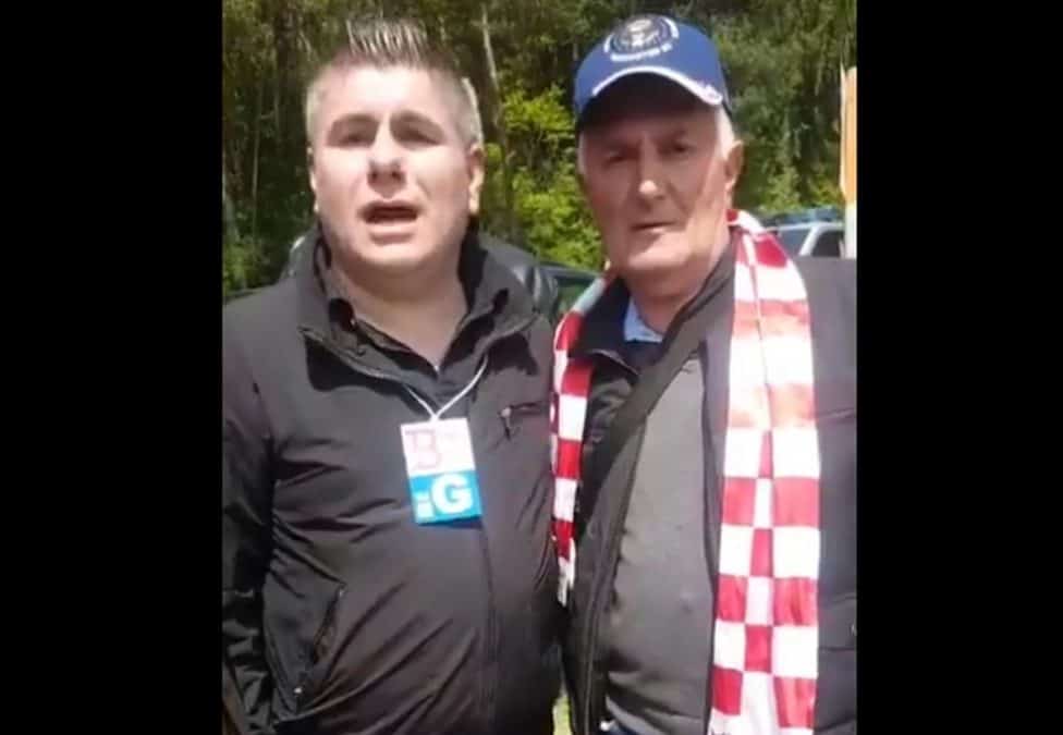 Today in #Bleiburg Velimir Bujanec spitted on my colleague @DanijelMajic. The crowd around him tried to beat the Journalist. When I asked him about his attack he said to me: “Are you gay. You look very gay to me.” pic.twitter.com/lx2816GvMc