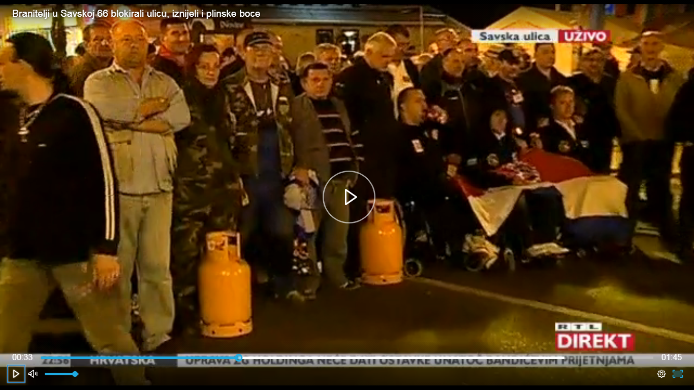 “Sam taj čin smo i mi svi hrvatski branitelji osudili istog trenutka. Govorim o činu postavljanja plinskih boca na cestu i plinske boce su vrlo brzo uklonjene. Taj čin, kao i prosvjed hrvatskih branitelja, bio je posljedica apsolutno neprihvatljivog i neodgovarajućeg odnosa tadašnje vlade prema hrvatskim braniteljima (..) Taj čin prosvjeda hrvatskih branitelja ne može se povezivati ni na koji način s onime što sada vidimo“.
