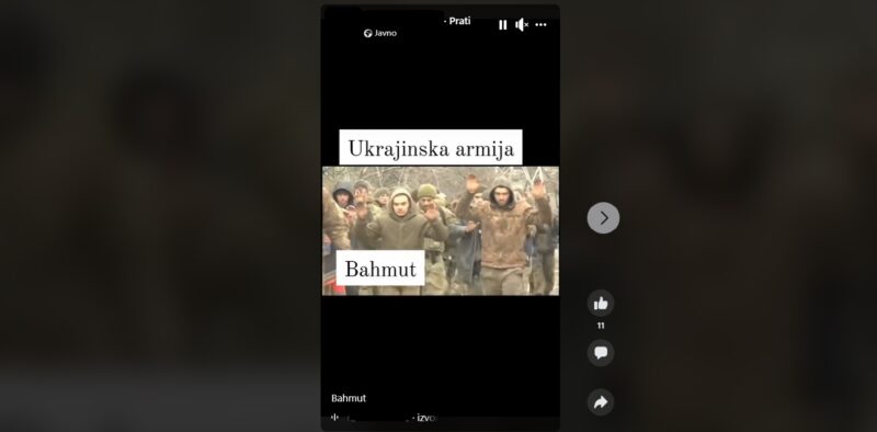 Na Facebook profilu hrvatskog korisnika 8. ožujka objavljen je video iz Ukrajine (arhivirano ovdje) za koji se tvrdi da prikazuje predaju ukrajinskih vojnika u gradu Bahmutu.