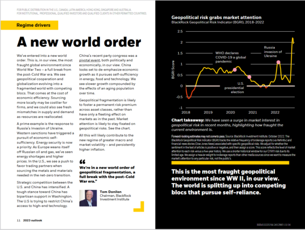Tom Donilon, predsjedajući BlackRockovog Investicijskog instituta, potpisan je na poglavlju u izvješću o globalnom stanju stvari u 2023. u kojem se uistinu spominje “novi svjetski poredak”.
