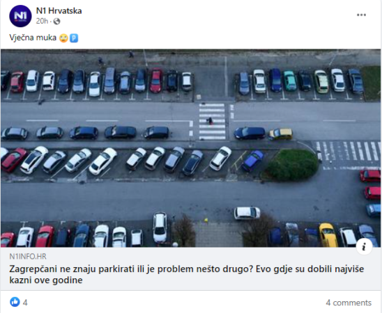 “Zagrepčani ne znaju parkirati ili je problem nešto drugo? Evo gdje su dobili najviše kazni ove godine”, naslov je članka (arhivirano ovdje) objavljenog 1. listopada na portalu N1info.
