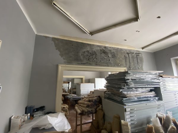 Dio građe tek je porazbacan po prostorijama privremenog čuvališta, a nakon poplave građa je vidljivo mokra, iz ladičara „curi“ voda, po građi se vrlo brzo počela razvijati plijesan štetna ne samo za građu Hrvatskog muzeja arhitekture već i ljude.