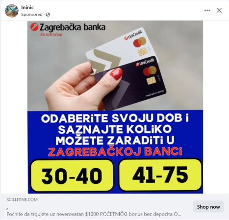 “Odaberite svoju dob i saznajte koliko možete zaraditi u Zagrebačkoj banci”, navodi se u oglasu čiji oglasa donosimo niže.