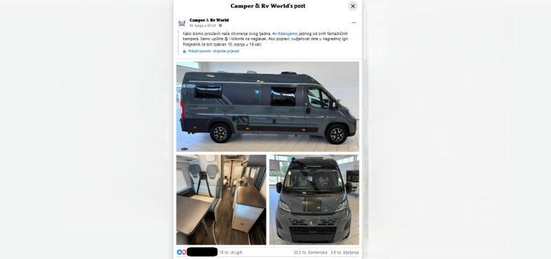 Uz sve već navedeno, nagradne igre i natječaji zakonom su regulirani, imaju pravila sudjelovanja koja bi trebala biti vidljiva i jasno naznačena. Ništa od toga ovdje ne postoji. Iz objave nije jasno vidljivo kako će se potencijalni dobitnik biti izvučen ili zašto točno treba napisati “naglasak” kako bi se ušlo u razmatranje za dodjelu kampera.