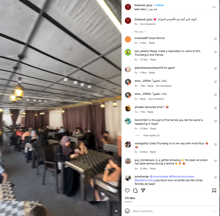 Nekima ni takvi izvještaji nisu uvjerljivi pa šire manipulativne tvrdnje da nema gladi u Gazi jer tamo rade poneki restorani.
