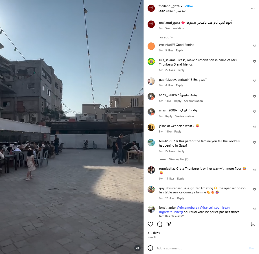 U postu su i poveznice koje vode na Instagram-profile tri ugostiteljska objekta u Gazi: “Cafe Estkana”, “Thailandi Gaza” i “O2 Gaza”.