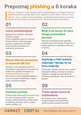 Kako je za Faktograf rekao CERT, nacionalno tijelo za prevenciju i zaštitu od računalnih ugroza sigurnosti, phishing – lov na žrtve lažnim predstavljanjem – prednjači u internetskim prijevarama. Kao što je to slučaj s bilo kojom drugom prevarom, prvi znakovi koji upućuju na prevaru su obećanja velikih i brzih povrata uloženog novca. Izbjegavajte sve transakcije koje zahtijevaju plaćanje unaprijed u kriptovaluti. Također, izbjegavajte uzimati investicijske savjete od osobe koju ste upoznali online i nikad se s njom niste susreli. CERT na svojim stranicama ima detaljno objašnjeno kako izbjeći phishing, vrstu prevare u kojoj napadač lažnim predstavljanjem i naizgled legitimnim zahtjevom pokušava potencijalnu žrtvu natjerati da učini nešto u njihovu korist.