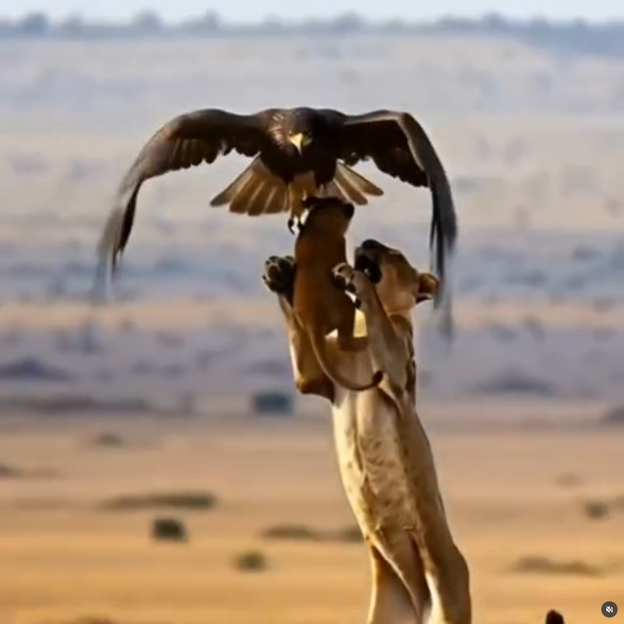 Nedavno se društvenim mrežama pojavio inspirativni video (objavljen na Facebooku 23. rujna 2025. godine) koji pokazuje sukob dvaju divljih grabežljivaca: lavice i orla kojemu je mali lavić bio plijen. Uz njega stoji emotivan opis: