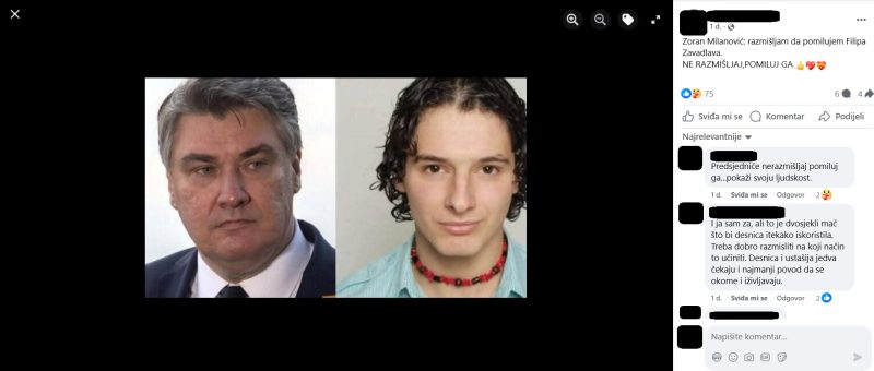 Korisnici društvenih mreža objavljuju da je hrvatski predsjednik Zoran Milanović rekao da razmišlja o pomilovanju trostrukog splitskog ubojice Filipa Zavadlava (arhivirano ovdje, ovdje i ovdje).