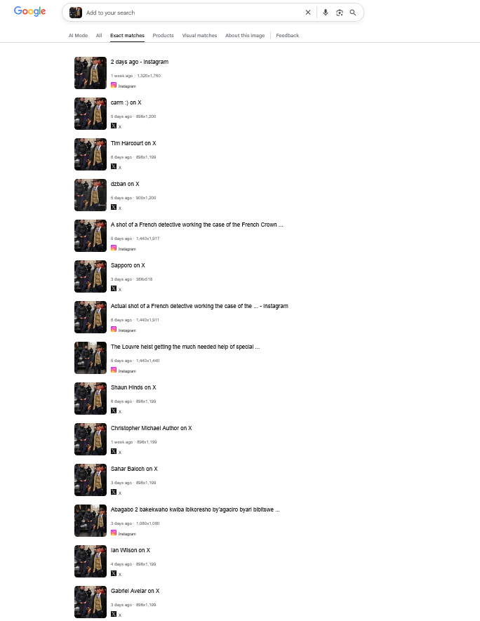 “Prava snimka (ne umjetna inteligencija!) francuskog detektiva koji radi na slučaju francuskih krunskih dragulja ukradenih iz Louvrea u drskoj pljački usred dana“, dio je objave s X-a koja ima preko 5,8 milijuna pregleda.