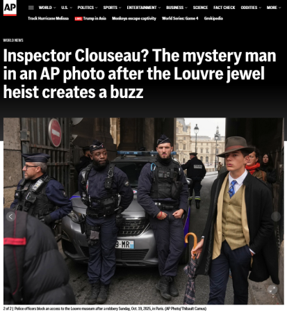 Korisnici društvenih mreža pobrinuli su se da priči dodaju i taj završni detalj: “detektiva iz Louvrea”, misterioznog, kicoški odjevenog, muškarca čija fotografija ovih dana kruži internetom.