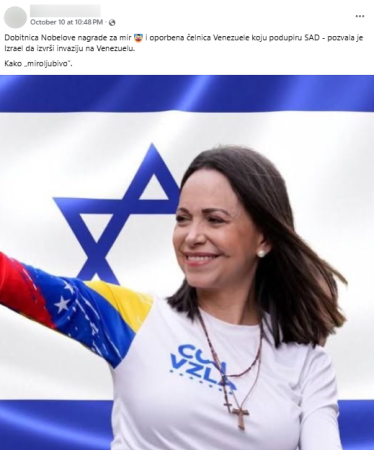 Sad se društvenim mrežama pak širi (arhivirano ovdje) da je Machado pozvala Izrael da izvrši invaziju na Venezuelu. U jednom od statusa navodi se sljedeće: