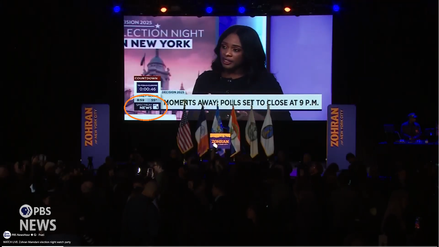 Nije, naravno, sve onako kako izgleda. Pronašli smo i snimku iz Mamdanijeva stožera na kojoj se vidi drugačija situacija. Video prijenos koji je PBS News emitirao uživo (u trajanju od preko tri sata) iz stožera pokazuje da se cijelo vrijeme na ekranu pratilo posebnu izbornu emisiju njujorškog televizijskog kanala Spectrum News (1, 2).