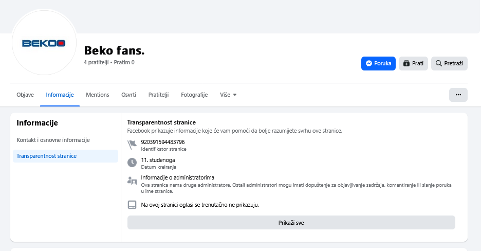 Za razliku od službene Facebook stranice “Beko” koja ima više od 7,3 milijuna pratitelja, a otvorena je još 2017. godine. Na pravoj stranici Beka stoji i službeni e-mail te link na hrvatsku podružnicu te kompanije.