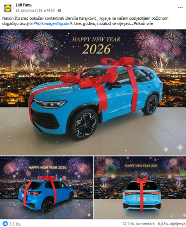 Pobjednik će biti objavljen 9. siječnja 2026. u 19:00 sati“, stoji u postu Facebook stranice “Lidl Fans.” objavljenom 29. prosinca 2025. godine.