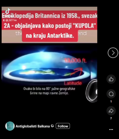 Zaključno, u enciklopediji Britannici iz 1958. ne navodi se da postoji kupola na rubu Antarktike koja bi dokazala teoriju o ravnoj Zemlji. Iz uredništva enciklopedije jasno su poručili da u izdanju iz 1958. ne postoji ništa što bi poduprlo teoriju o Zemlji kao ravnoj ploči, a kupole koje se spominju u enciklopediji zapravo su ravni snježni vrhovi koji se nazivaju kupolama, a opisane su u više kredibilnih izvora. S obzirom na sve navedeno, video na profilu Antiglobalisti Balkana ocjenjujemo netočnim.