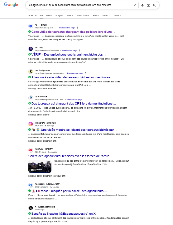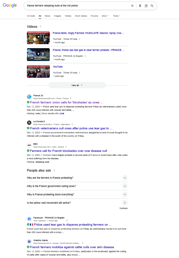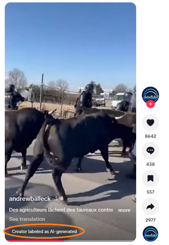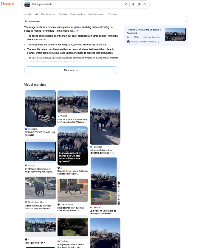 Ipak, neki korisnici interneta otišli su korak dalje pa tvrde kako su francuski prosvjednici pustili bijesne bikove na kordon policije. Tvrdnja se širi društvenim mrežama jer je potkrijepljena videom koji navodno prikazuje taj događaj.