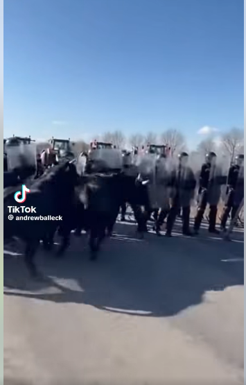“Francuska“, natpis je na hrvatskom jeziku umetnut u Facebook-reels, dok se na kraju pojavljuje natpis na francuskom: “Kada farmeri puste bikove na organe reda“.