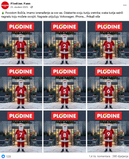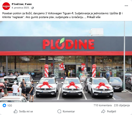 Inače, Plodine su preko svoje službene internetske stranice već ranije zamolile kupce i pratitelje da se, radi vlastite sigurnosti, ne prijavljuju na internetske stranice koje nisu u domeni plodine.hr te da ne dijele svoje osobne i financijske podatke organizatorima tih nagradnih igara.