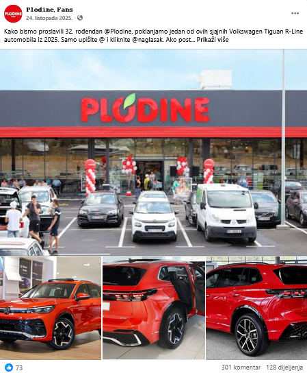 Za usporedbu, službena stranica Plodina na Facebooku ima preko 226 tisuća pratitelja, a kreirana je 2015. godine. Objave na službenoj stranici su redovite i nagradne igre nisu jedini sadržaj.
