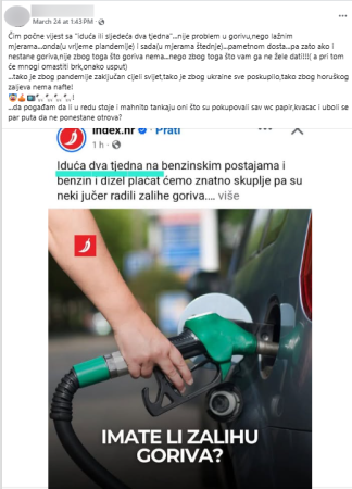 Korisnici društvenih mreža šire teoriju da cijene goriva ne rastu zbog pada ponude na svjetskom tržištu nego jer ga građanima ne žele dati.
