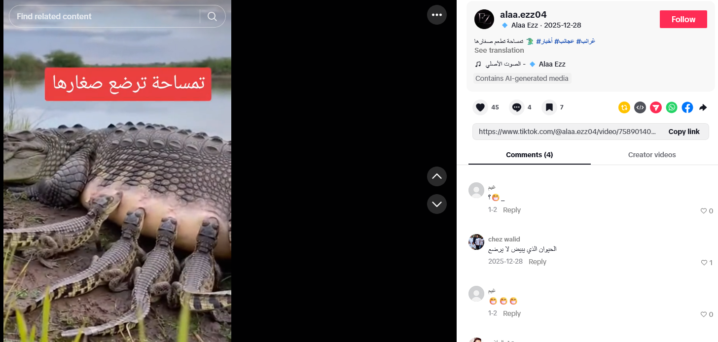 Gornja slika je dakle, snimka zaslona jednog takvog videa, objavljenog 12. srpnja 2025. godine. Iako ga autor nije označio kao AI-generiran (što bi prema pravilima TikToka trebao napraviti) video sadrži niz elemenata digitalne manipulacije.