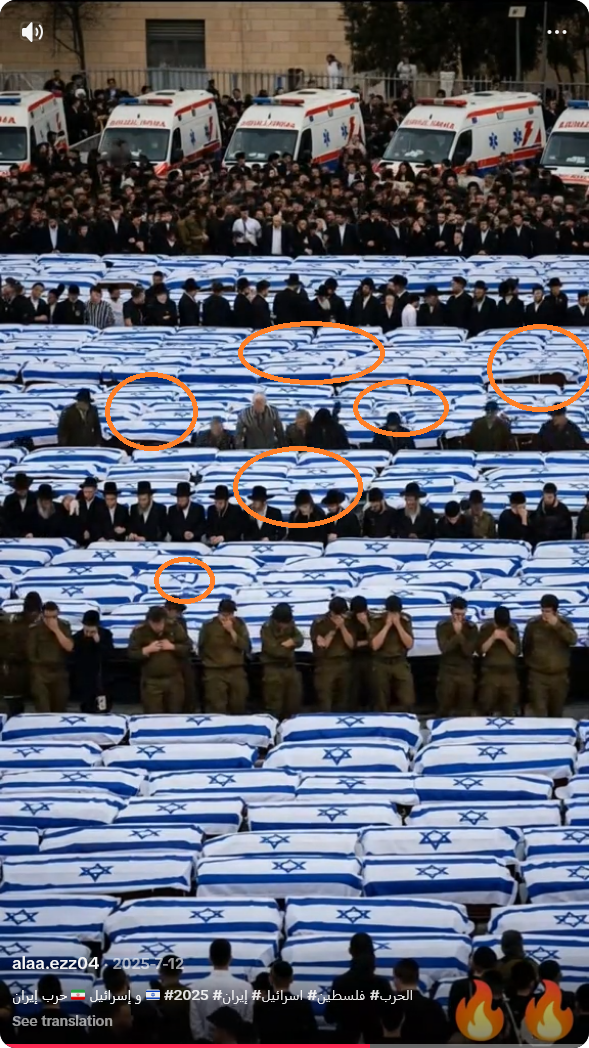U Izraelu je u protekla 24 sata 126 izraelskih vojnika ubijeno od iranskih raketa, raketa Hezbollah i okršaja s Hezbollahom, a najmanje 500 vojnika je ranjeno. Ubijeno je 28 visokih časnika. Među poginulima je i visoki dužnosnik Mossada. Ovaj sprovod je samo jedan od njih. Ovakve stvari nećete vidjeti u izraelskim medijima.
