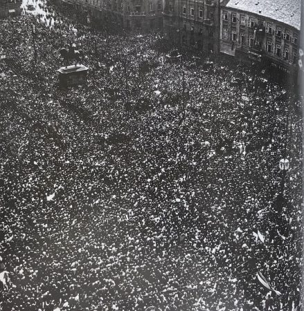 ovdje). Jedna od njih je Pavićeva, nastala s vjerojatno iste pozicije kao i fotografija koja je poslužila za plasiranje dezinformacije o velikoj proslavi osnivanja NDH (arhivirano ovdje). Dan kasnije dnevni list Vjesnik je izvještavao kako se “do 10 sati sleglo na Jelačićevom trgu i okolnim ulicama preko stotinu tisuća ljudi“, te da su “sve kuće na samom trgu i na prilazima trgu bile su načičkane mnoštvom svijeta, a neke palače s ravnim krovom ispunilo je građanstvo do posljednjeg kutića“.